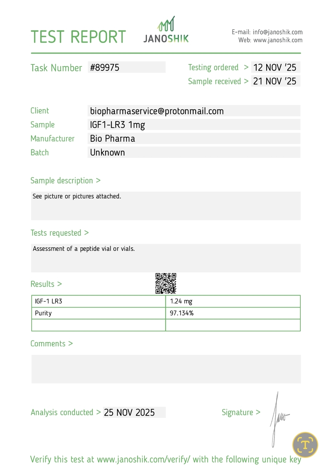 • Longer Half-Life: IGF-1 LR3 has a longer half-life than regular IGF-1, allowing for sustained effects in the bloodstream, which enhances its muscle-building properties.