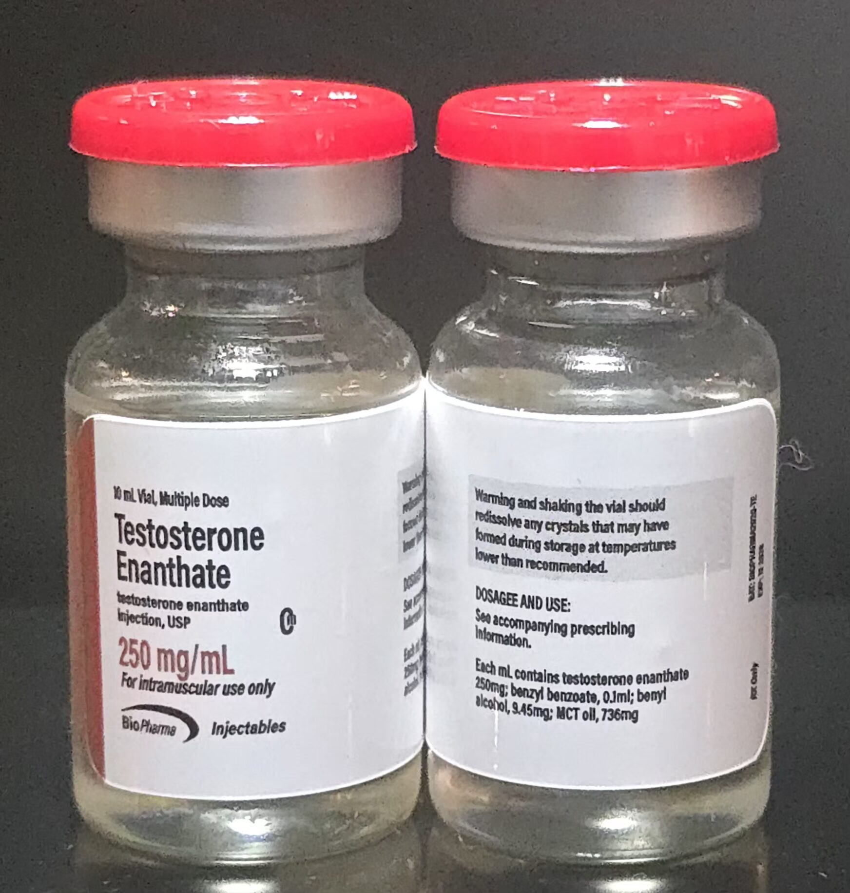 The recommended dosage of TE varies widely depending on who you talk to. In our opinion, a sensible dosage for most athletes is between 250-1000mg per week. For doses higher than 500mg/week, it is recommended that that the dosage be divided into two injections.